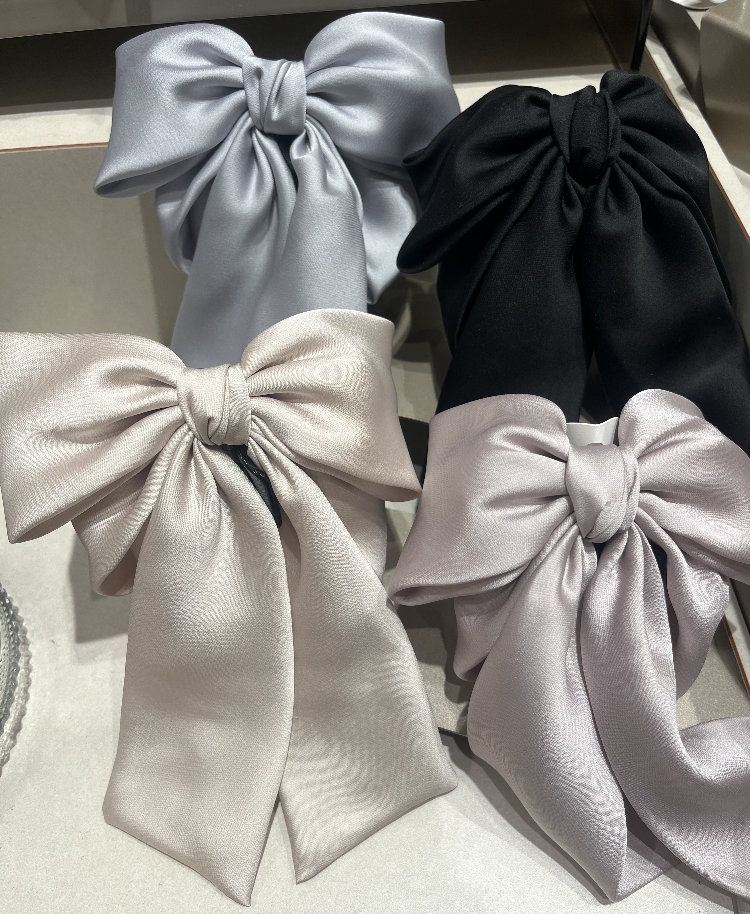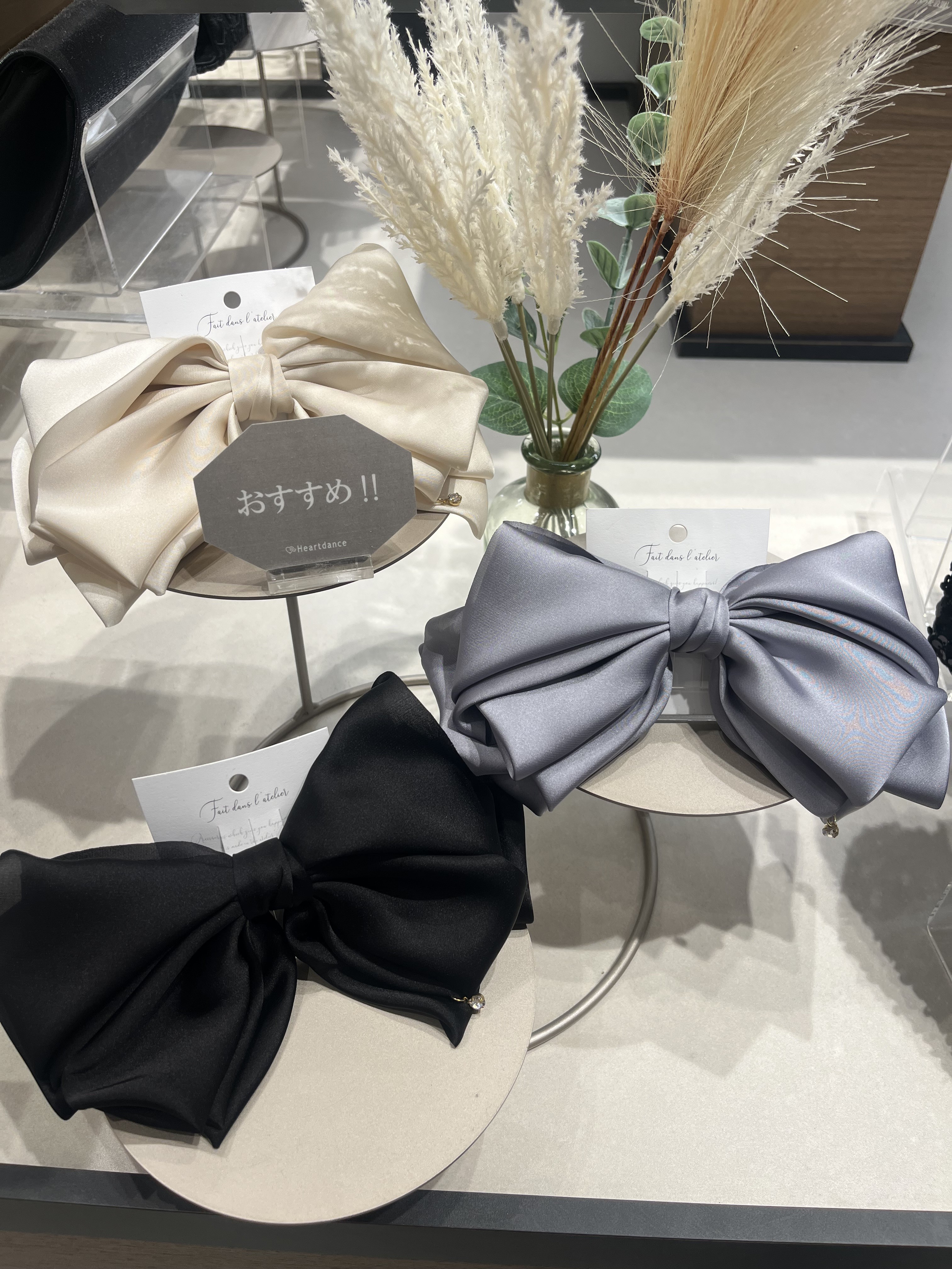 リボンの形をしたアクリルバンス! 軽くて大きめなので、髪もまとめやすくなっております。 ゴールド、シルバーのニュアンスのパーツもリボンの裾についていたりして、どんなファッションでも合わせやすいアイテムです( ¨̮ ) カラーも3色ご用意していますので、是非店頭にてご覧下さい☆!