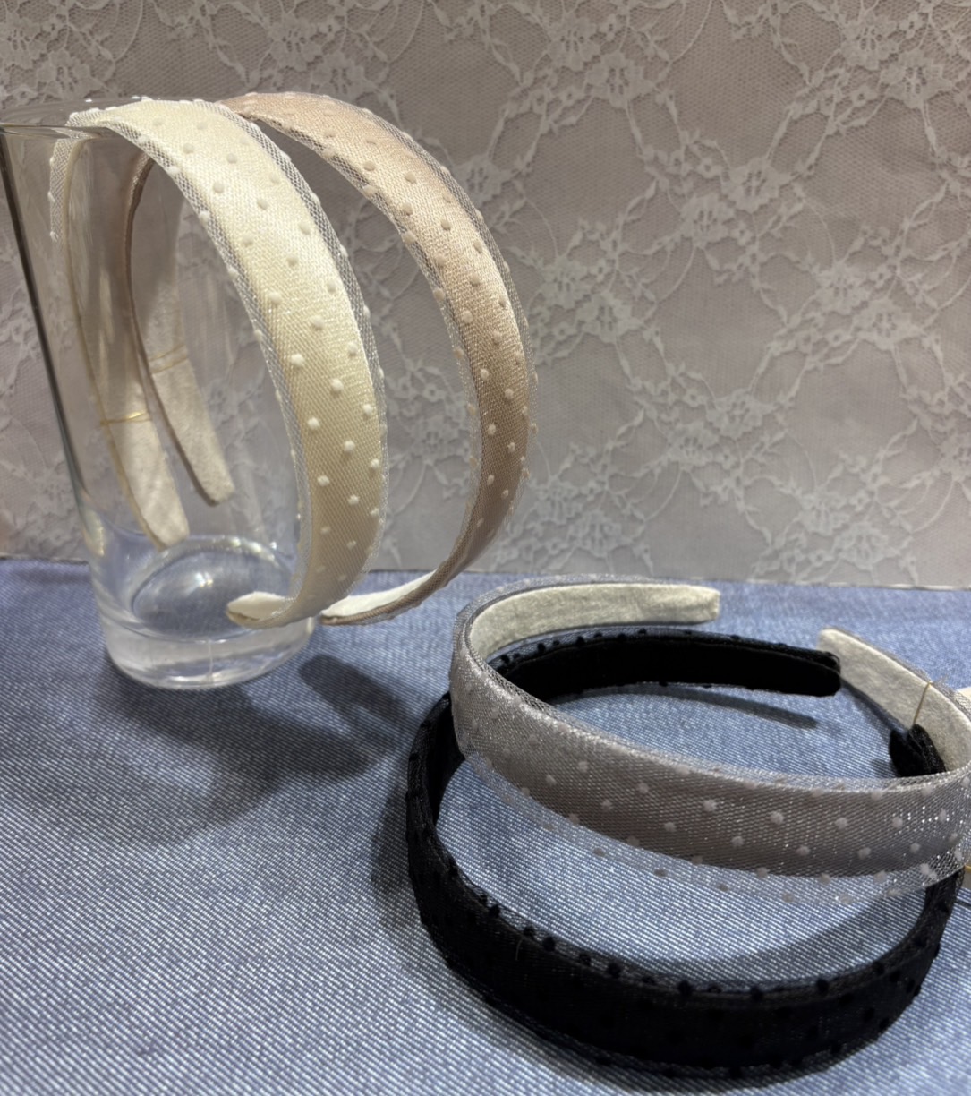 サテンカチューシャ×レース×ドット柄で 上品でクラシカルな雰囲気に!!