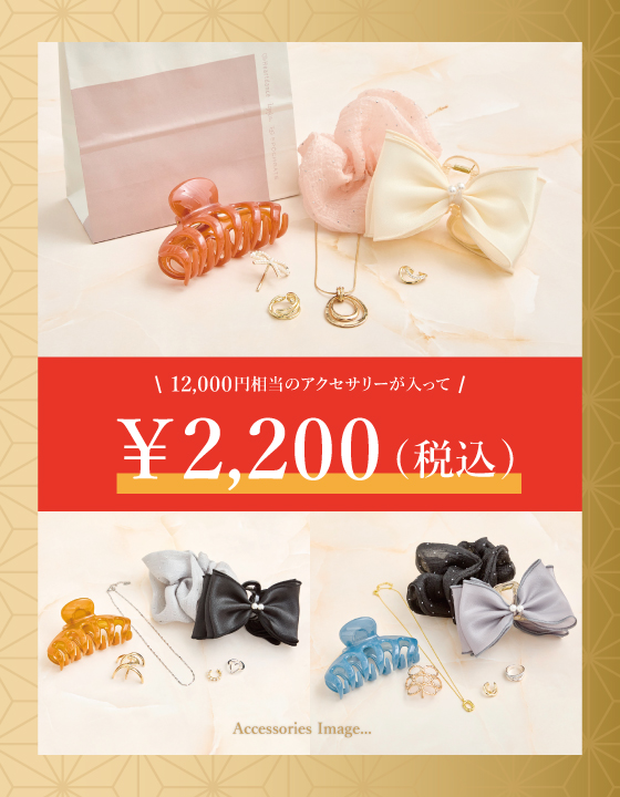 福袋の中には ヘアアイテムを含むアクセサリー入り! ( 税込12,000円相当 )
