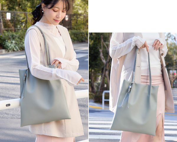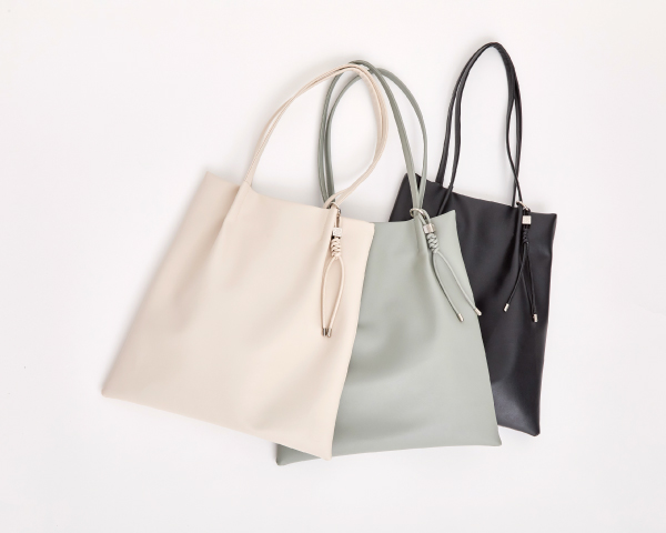 チャーム付トートバッグ No. 90241 price : 3,960yen (tax in) 3color : (画像左から) アイボリー、ライトグリーン、ブラック