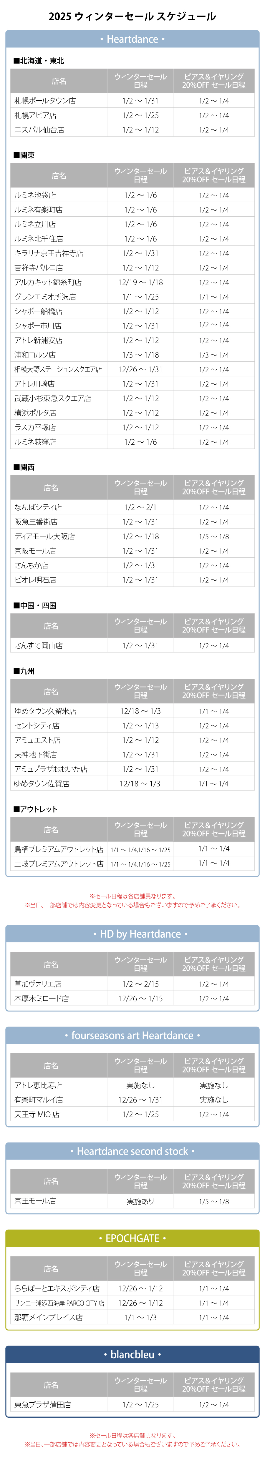 ※セール日程は各店舗異なります。 ※当日、一部店舗では内容変更となっている場合もございますので予めご了承ください。